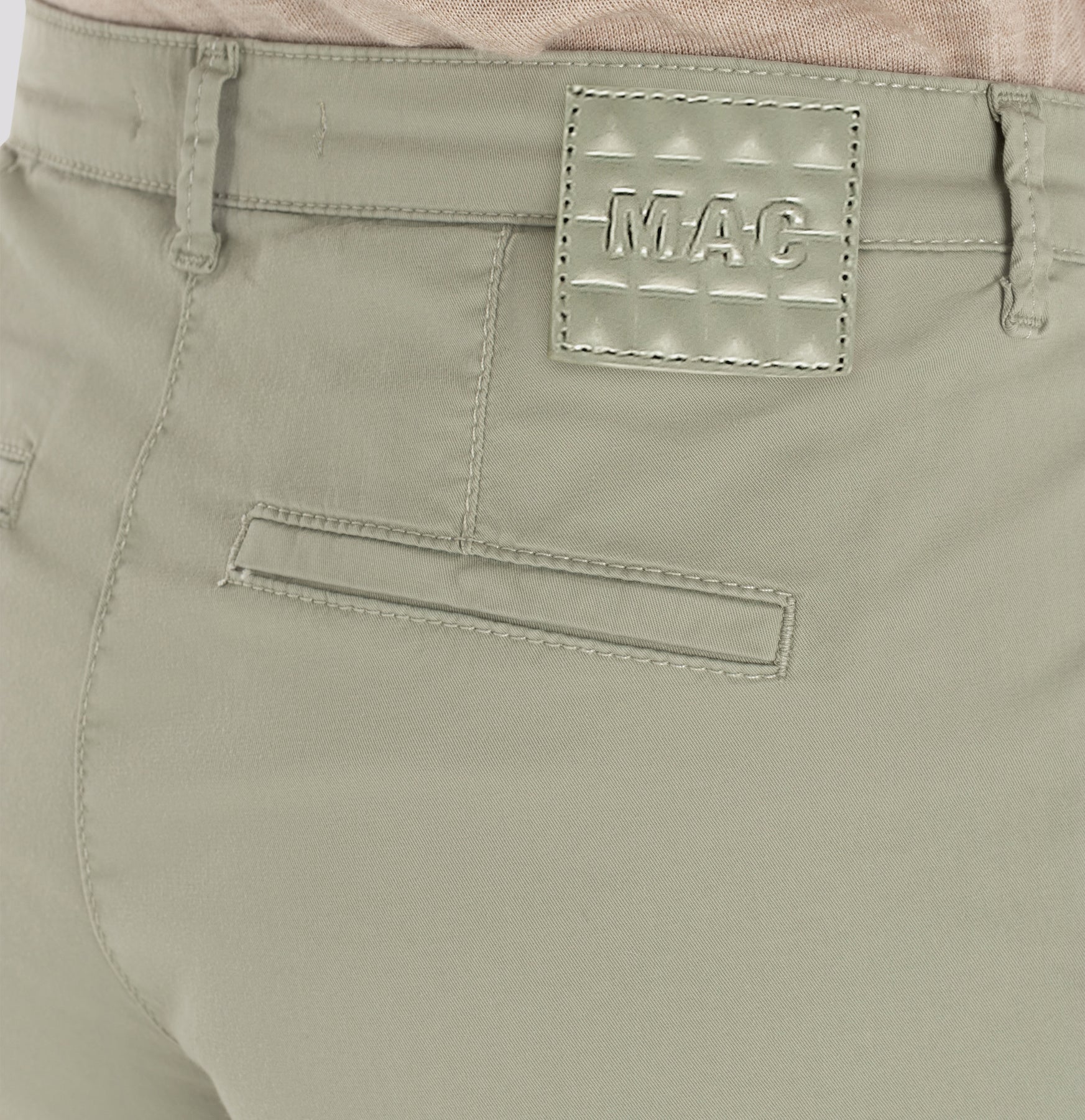 Slim Fit, Slim Leg, schmal zulaufendes Bein, mittlere Leibhöhe, bequeme Taille, Chino, seitliche Eingrifftaschen vorne, Paspeltaschen hinten, feine, figurschmeichelnde Bügelfalten, dezent umgeschlagener Saum, Authentic Stretch Gabardine, hochwertige Baumwoll-Qualität mit Elasthan, weich im Griff, dezenter Glanz, hervorragendes Rücksprung-Verhalten, sportiver, eleganter Look, hoher Tragekomfort, über Better Cotton gesourcte Baumwolle, Das Model ist 1,75m groß und trägt die MAC Hosengröße 36, Fußweite bei Größe 36: 31cm